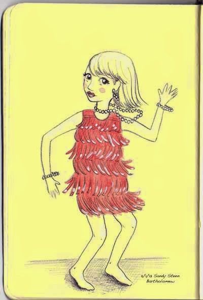 Walking around the entire outside of my son's High School desperately searching for an unlocked door... in the dark. Finally sneaking in as a student ran out... then slipping into the auditorium just as a bunch of red-dressed flapper girls take the stage... ah? Ah. Just stop, Sandy. You don't need to be anywhere else. Yes, Alex, I am happy to wait another half hour while you rehearse... besides, I see something that I would LOVE to draw...