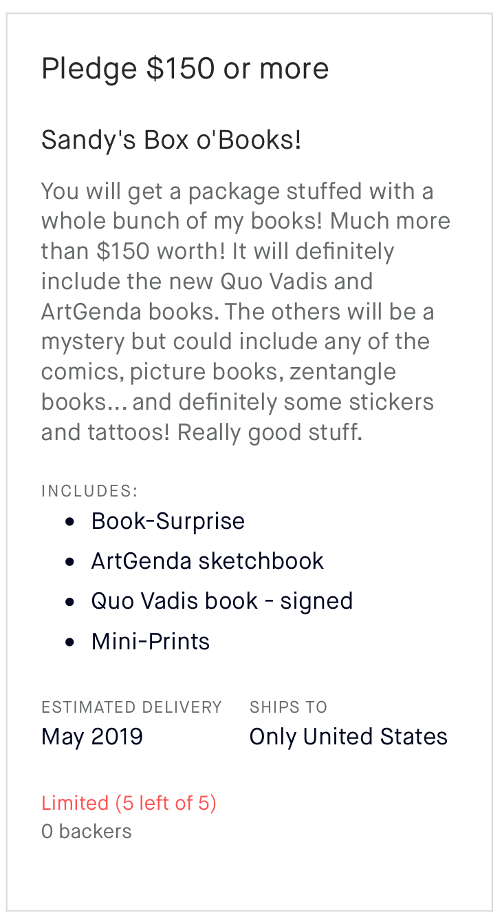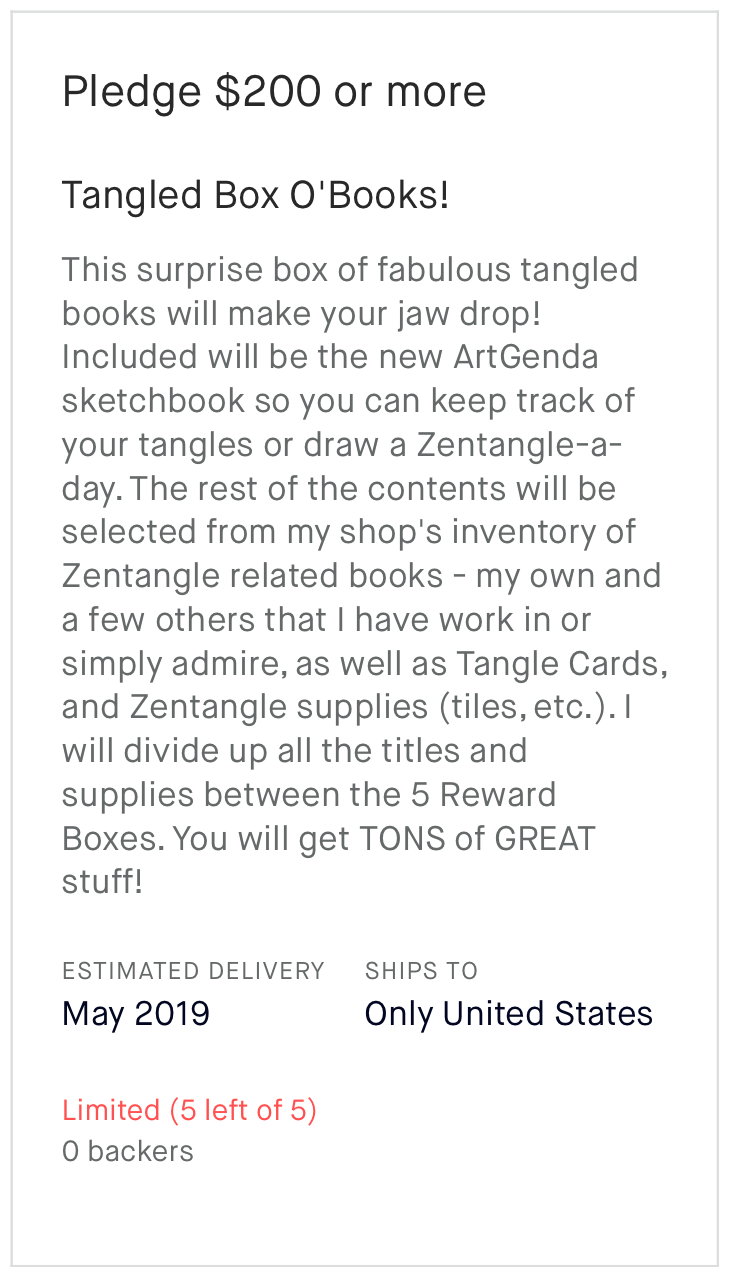 There are only five of each of these rewards available and they will have lots of really great, special STUFF in them - so go back the project right away!!
